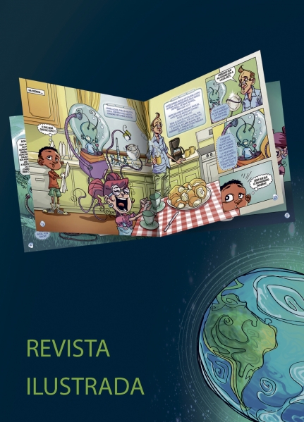 Revista ilustrada – Uma história totalmente colorida e divertida, com atividades que envolvem os personagens da ação, ensinando sobre a importância da água para o nosso planeta.